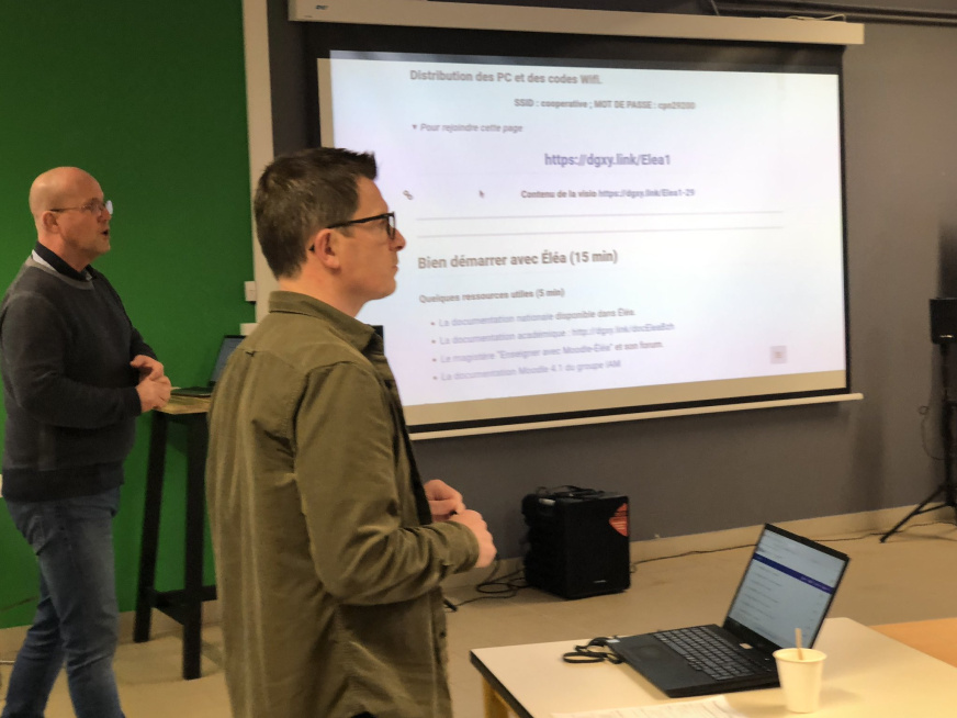 Le 12 mars 2024, à la Coopérative Pédagogique Numérique au lycée Vauban à Brest, Matthieu Devillers et Erwan Treguer ont animé une formation des enseignants et enseignantes à la plateforme Eléa.